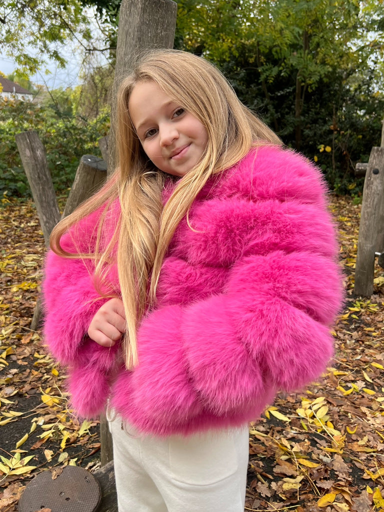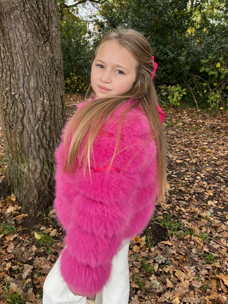 This Kids Hot Pink Faux Coat is sure to keep your little one warm and stylish. Made with luxurious fur, this coat is perfect for any occasion. Its soft and comfortable material will make your child feel like a million dollars while keeping them cozy during the colder months.