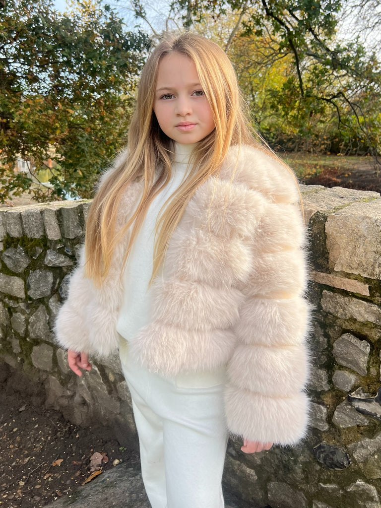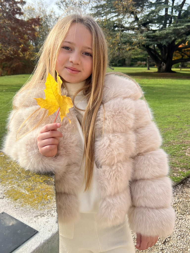 Light Beige Childrens Faux Fur Coat