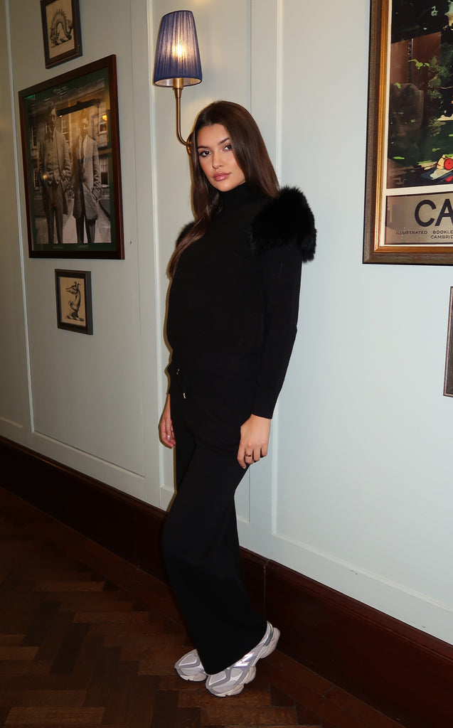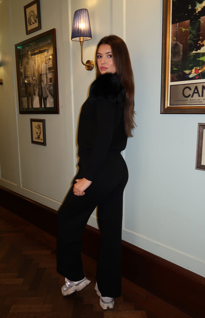 Black Luxury Fur Roll Neck Wide Leg Tracksuit