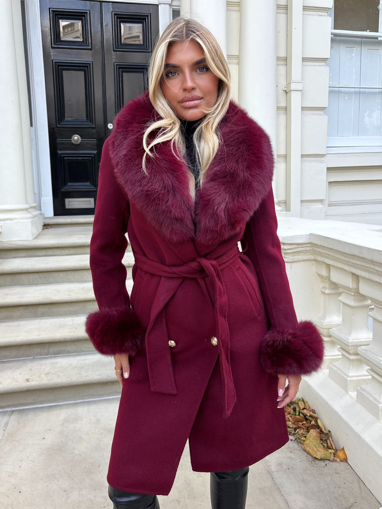 How stunning is our Camel Luxury Fur Cashmere Coat - the coat you need this winter. Featuring a luxury fur trim and cuffs and a belted waist to give you shape. Style with a winter look to bring the cosy yet chic vibes.
