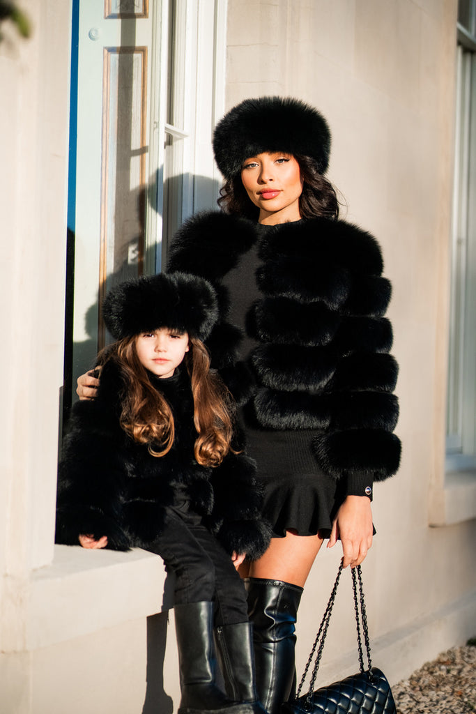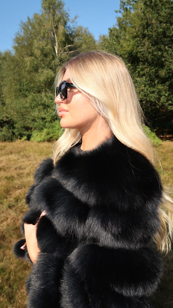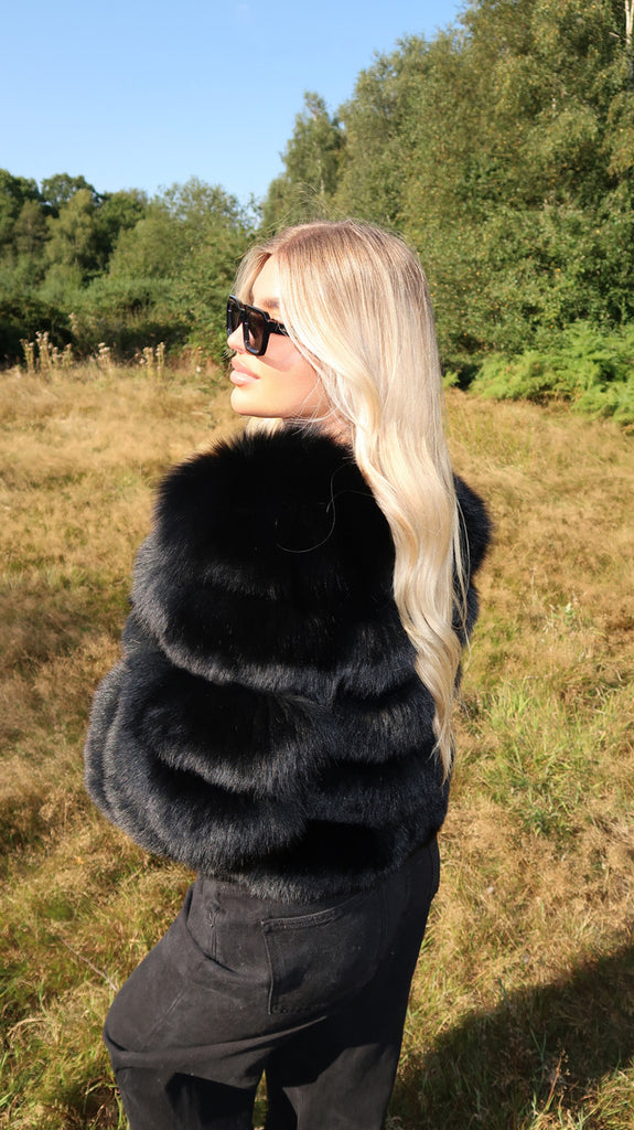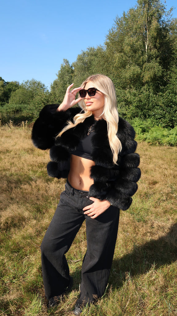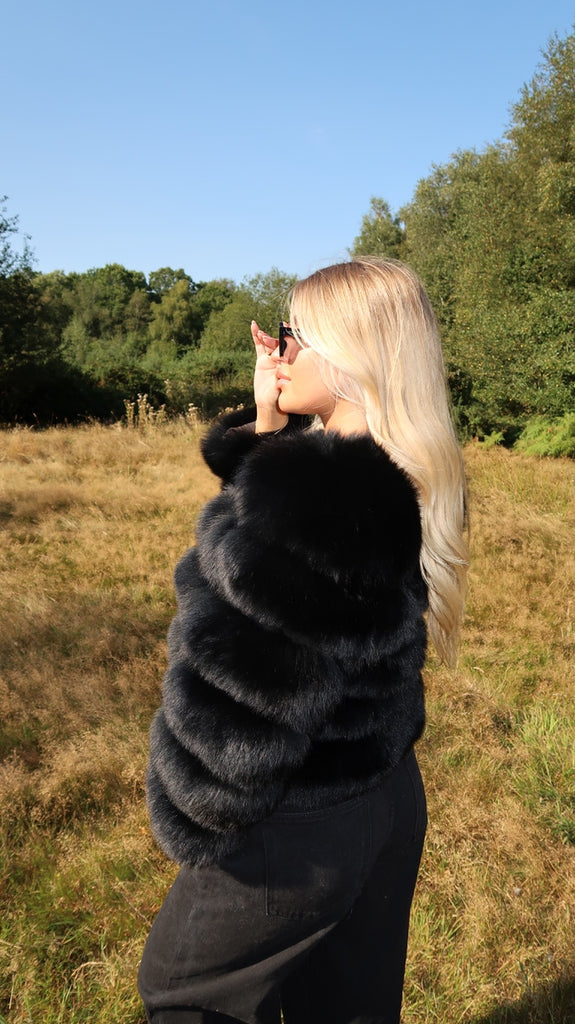 Black Luxury Fur 5 Row Cropped Sleeve Jacket