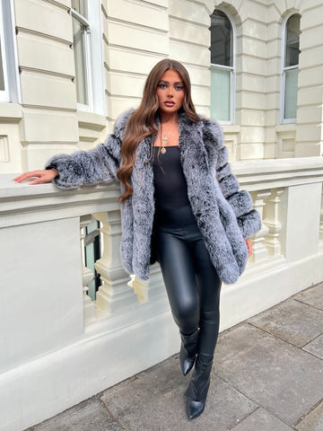 This mid-length luxury fur coat features expertly crafted panelled fox fur, combining elegance with warmth. Designed with five hook and eye fastenings, it offers a secure and seamless closure. The two-tone design adds depth and sophistication, making it a timeless addition to a refined wardrobe. Perfect for those seeking both style and comfort in cooler seasons.